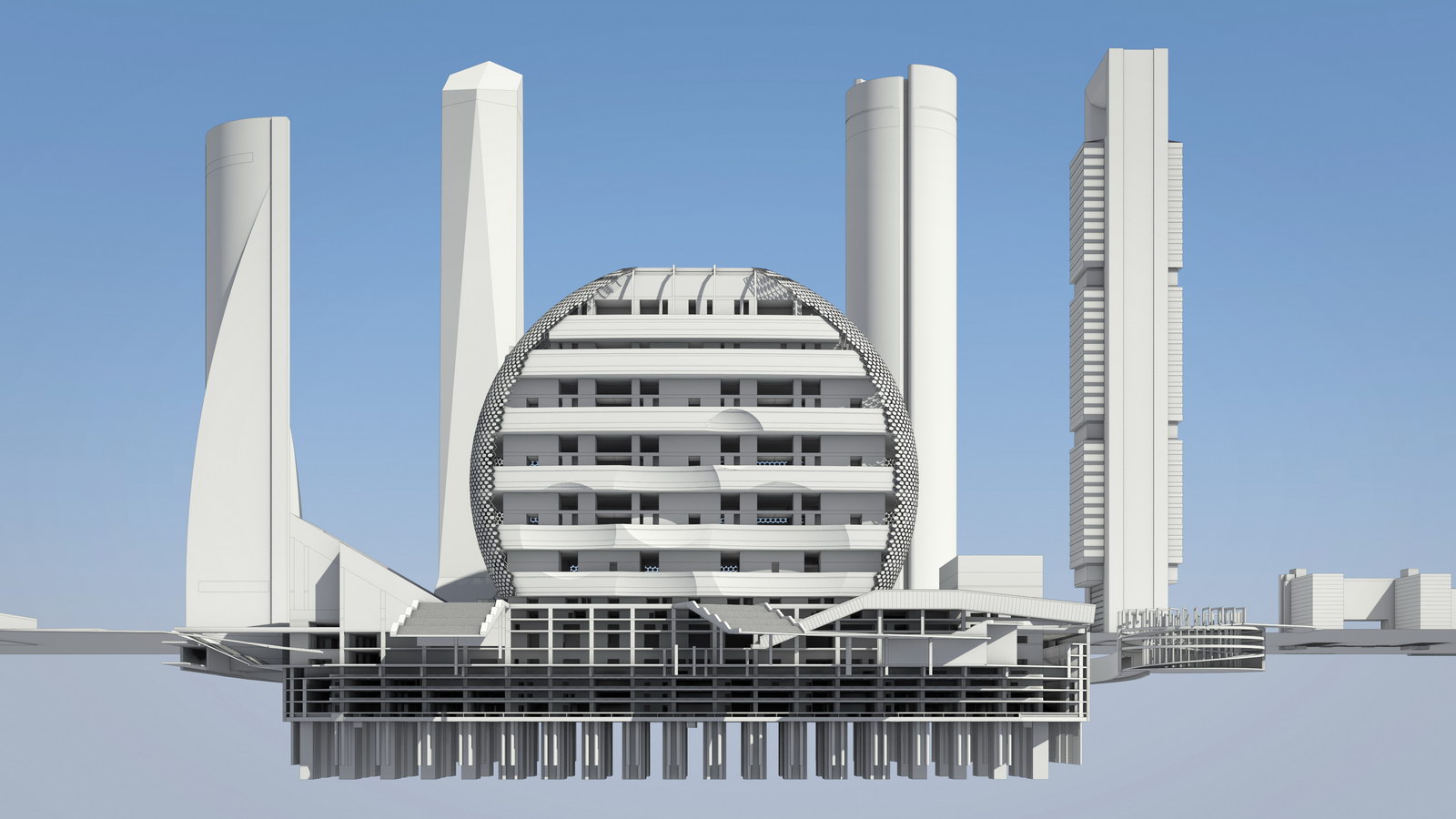 El proceso de ejecución de un edificio tan singular como este requiere de un dossier gráfico-técnico especializado. FCC encarga a Proin3D la elaboración del mismo puesto que se presenta a la licitación de la obra. De la descripción de este edificio ya hay bastante documentación en la red, dado que se trata de un proyecto del conocido y reputado estudio de Mansilla y Tuñón. Los diversos edificios que lo componen parten de una cúpula o hemisferio convenientemente seccionado por planos verticales en el que cada parte resultante gira sobre un eje compartido con otra de las porciones.