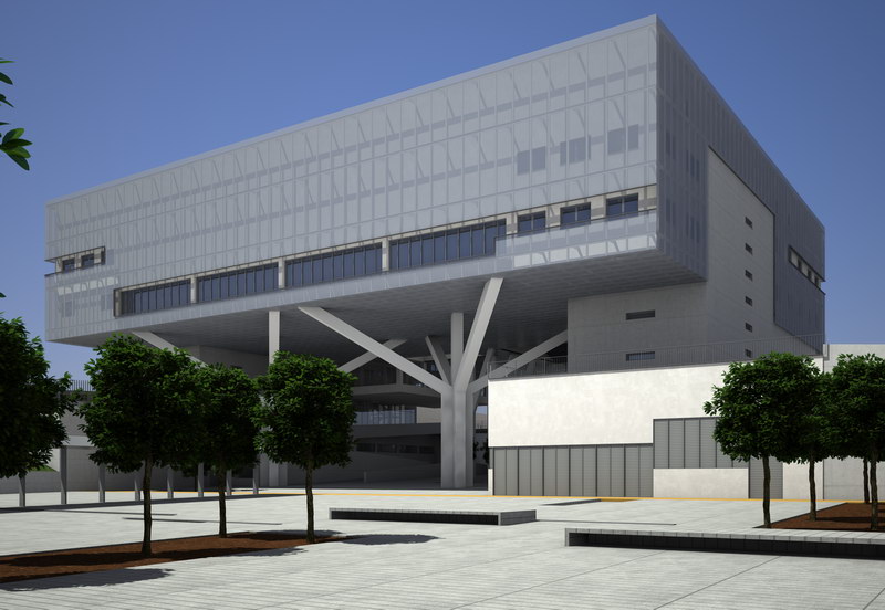 Mi colaboración consiste en la asistencia a las reuniones preparatorias con los clientes para organizar el trabajo entre el equipo de Proin3D y yo. Mi trabajo, en lo que a 3D se refiere, alcanza el modelado externo en su totalidad del edificio y la preparación y afinado de acabados de acuerdo con el estudio de arquitectura responsable del proyecto. Este centro se enmarca dentro de una zona de la ciudad que va a ser urbanizada y cuyo faro es un palacio de congresos.